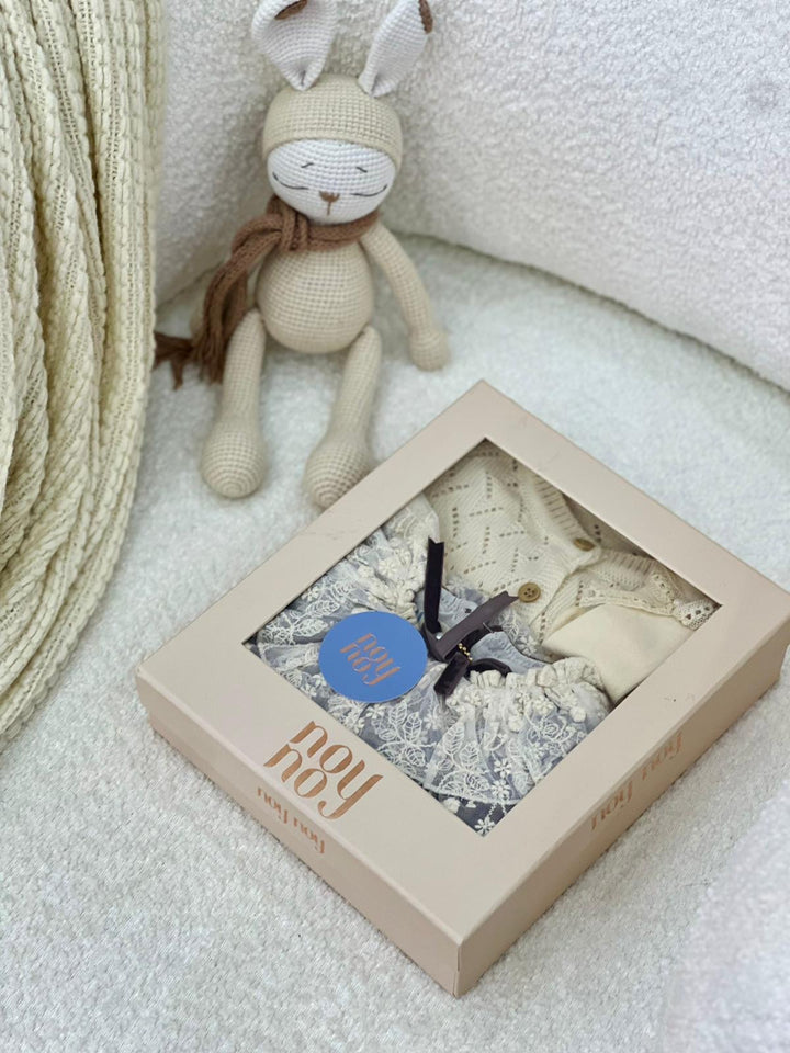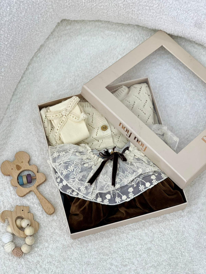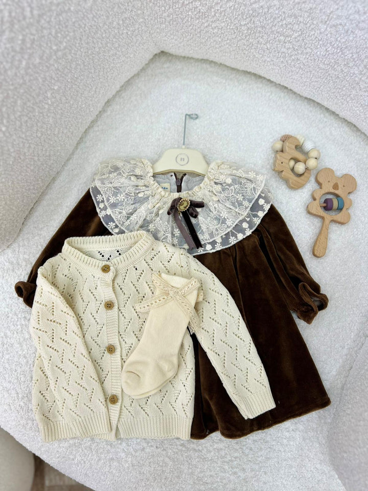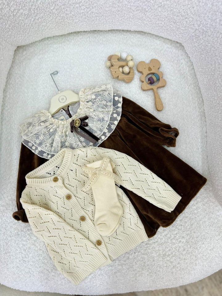 ✨ طقم بناتي يجمع بين الاناقة والدفء مكون من 3 قطع بتصميم كلاسيكي ناعم✨