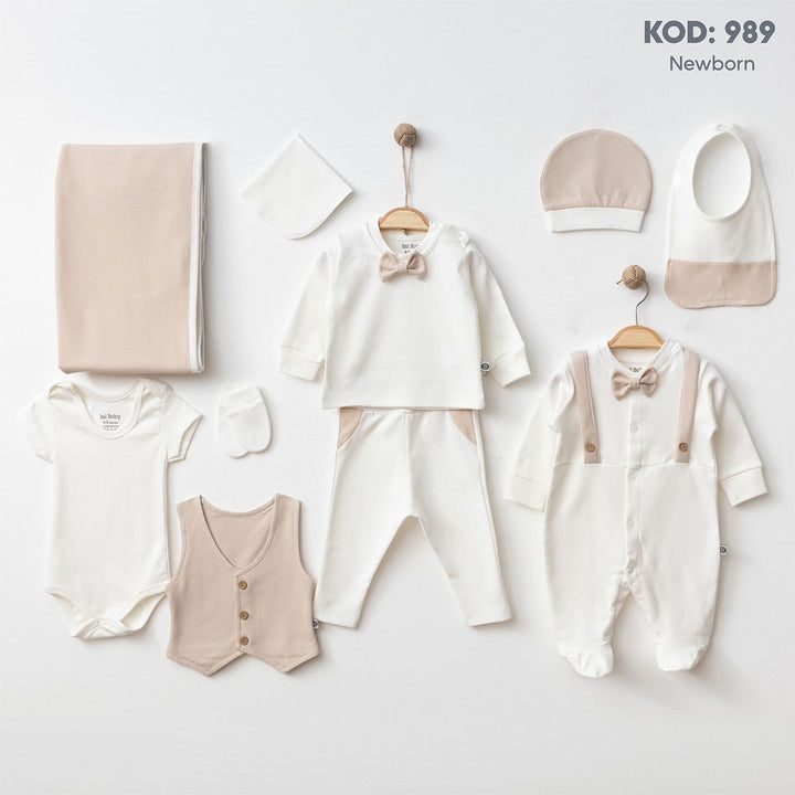 طقم بيبي نيوبورن ، مصمم بعناية ليجمع بين الراحة والفخامة، مثالي للمناسبات الخاصة أو كهديّة مميّزة للمولود الجديد. 👼🏻🍼💛