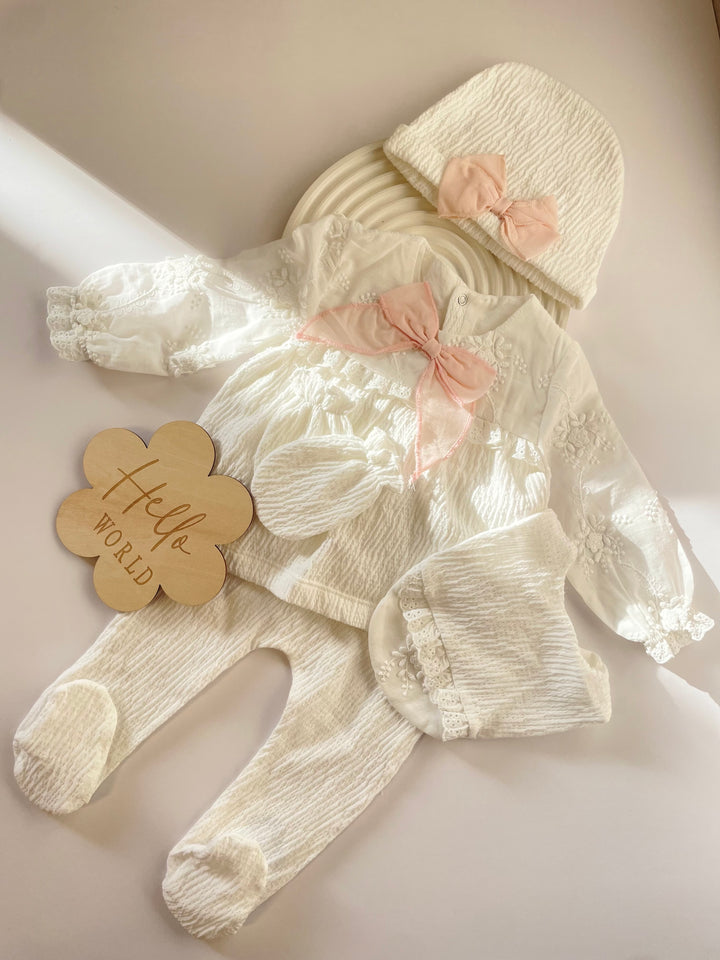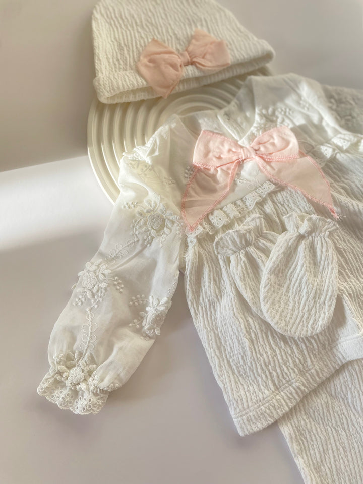 طقم بيبي نيوبورن باللون الابيض ، مناسب كطقم مستشفى 👼🏻🍼🩷